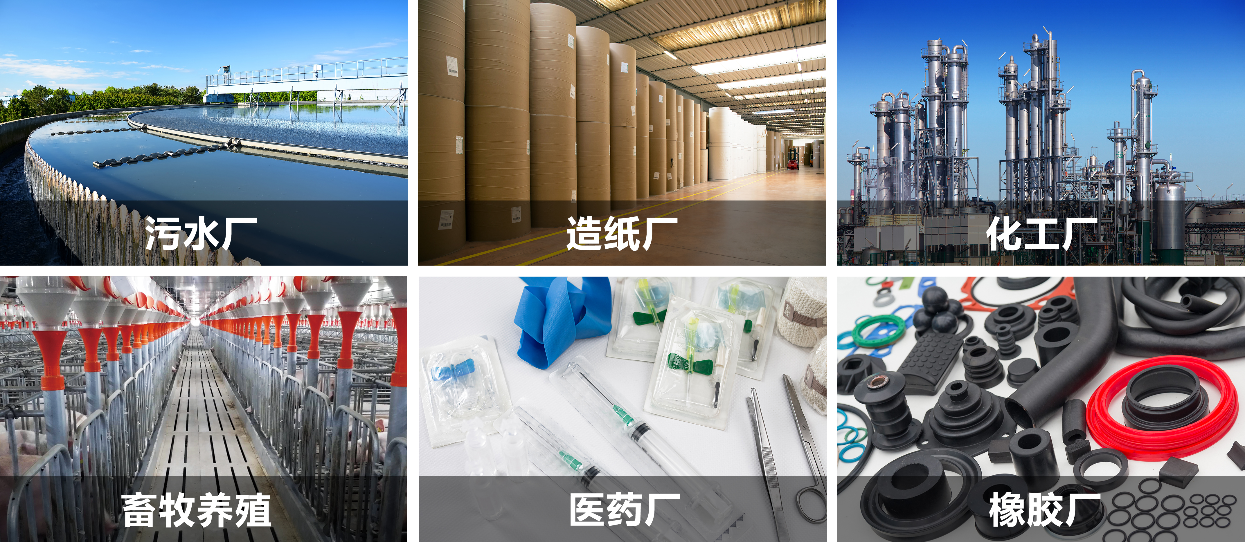 生產(chǎn)車間、污水污泥池、廢氣收集排放口污水廠、造紙廠、化工廠、畜牧養(yǎng)殖、醫(yī)藥廠、橡膠廠。